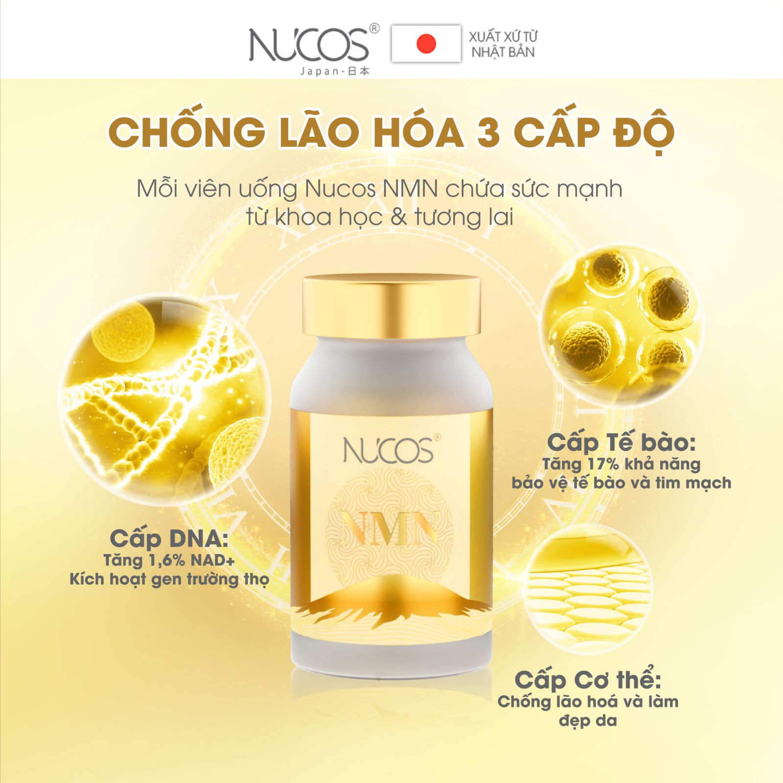 Viên uống thời gian NUCOS NMN là sản phẩm có công thức vượt trội từ trước đến nay của NUCOS với thành phần chính là NMN - một hoạt chất giúp tái tạo năng lượng & chống lão hóa từ cấp độ DNA.
