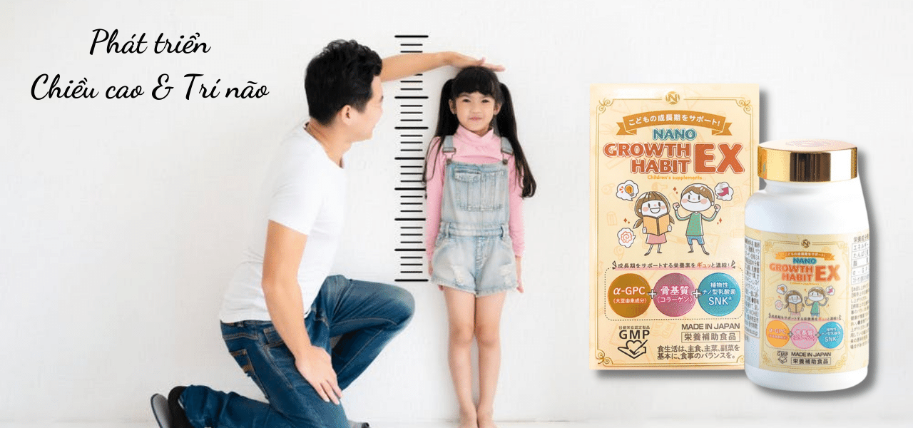 Viên Uống Phát Triển Chiều Cao Và Trí Não Nano Growth Habit EX Nhật Bản 120 Viên cung cấp các dưỡng chất cần thiết cho sự phát triển của trẻ nhỏ hỗ trợ giúp bé phát triển toàn diện về cả mặt thể chất lẫn trí não.